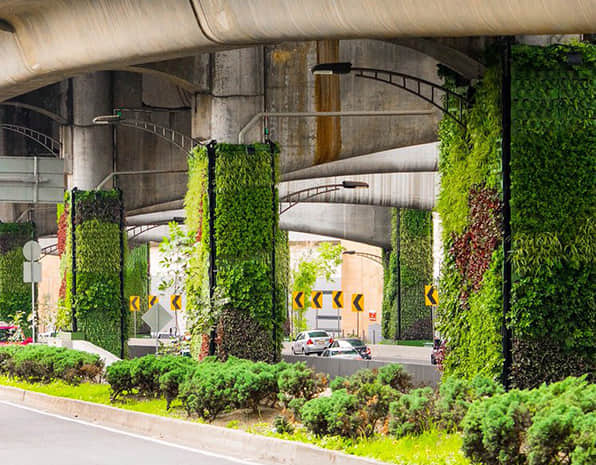 橋墩綠化,可應用于跨路橋、人行天橋、高架橋、立交橋、高速公路、輕軌等橋墩的綠化美化,用于城市道路景觀提升,提升城市整體形象。